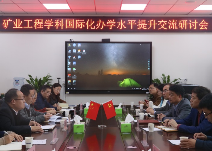11月19日下午,国产精品在A509会议室召开“矿业工程学科国际化办学水平提升交流研讨会”。外国语言文化国产精品党委书记张向东、院长徐剑、副院长祖大庆、研究生公共英语教学部主任崔化、副主任高飞,International Journal of Mining Science and Technology(TOP期刊)学报编辑段瑞云等老师,来我院进行交流研讨。我院党委书记陈新忠、资源工程系主任冯秀娟、采矿工程系副主任周楠、工业工程系副主任李贤功、交通运输系副主任李鑫、学生培养办公室主任赵俊芳、人才与学科工作办公室主任王君,以及两院教师代表参加了会议。副院长马立强主持会议。