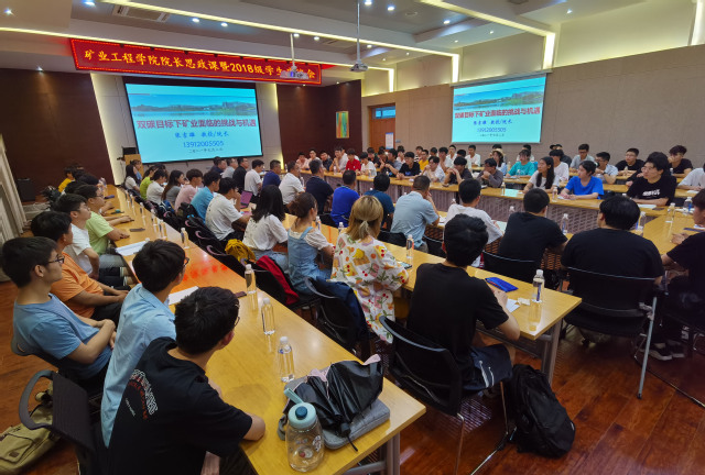 7月2日晚,院长张吉雄在矿业楼学术报告厅为国产精品2018级学生代表上了一堂思想政治理论课。