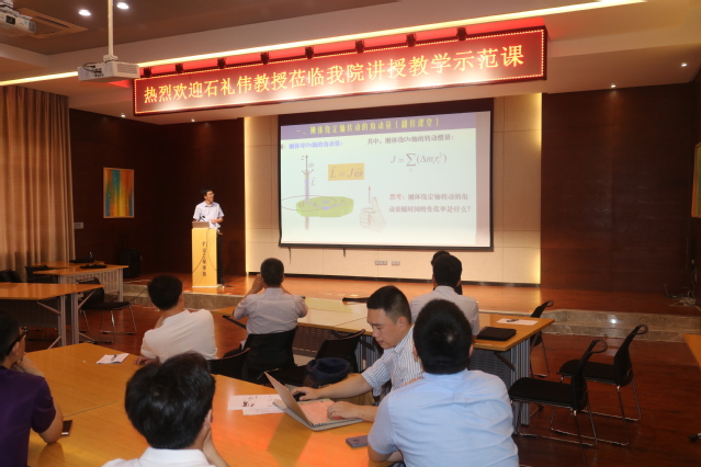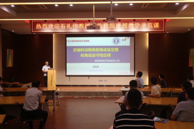 赛前,石礼伟教授在矿业楼学术报告厅(A604)给国产精品教师上了一堂生动的教学示范课。万志军副院长总结了石部长示范课的几个特点:教学内容好,基础知识、拓展知识、未来展望层次清晰,将深奥的物理理论和生产实践、日常生活相结合,有利于学生理解掌握;课堂设计好,以问题引入课堂内容,通过层层推进的理论和实例分析,最后解决问题;课程思政好,课程思政元素丰富,与课堂内容结合自然,真正做到润物无声;课堂氛围好,讲课富有激情,配合适当的肢体语言,利于调动学生参与课堂。他感谢石部长给大家上了一堂生动的教学示范课,希望各位老师努力钻研教学,将自己的每一门课都锤炼成“金课”,为国产精品人才培养贡献力量。