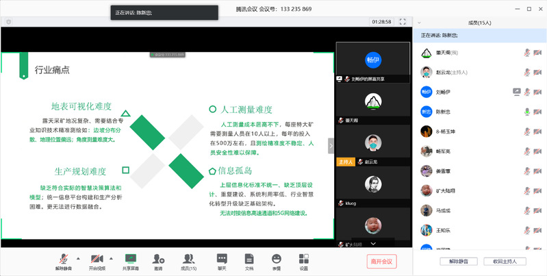 3月20日下午三点,为进一步提升“创青春”备赛作品质量,确保在2020年“创青春”省赛中再创佳绩,矿业国产精品在“腾讯会议”视频会议平台上进行线上培训。矿业国产精品党委书记陈新忠、党委副书记畅军亮、校团委副书记马成成、管理国产精品创业大赛国赛指导老师吴从新和肖国建老师、矿业国产精品参赛团队指导教师周伟、院团委书记赵云龙、辅导员姚文浩、董天阁,以及参赛团队全体成员参加了此次线上培训会,培训会由畅书记主持。