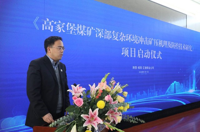 中国矿业大学副校长周福宝、山东能源淄博矿业集团副总经理黄书翔、咸阳市煤炭工业局局长侯军利、咸阳市科学技术局局长张璞波、长武县人民政府党组成员副县长任皓、陕西正通煤业有限责任公司执行董事、总经理刘业献等领导出席仪式致辞,并共同按下启动按钮。项目负责人窦林名教授对项目整体实施方案进行了汇报,各课题负责人分别对本课题研究内容、研究进展及相关研究计划等方面进行了详细汇报。