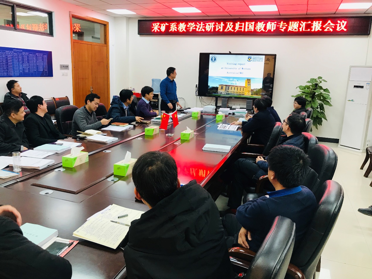 12月12日下午,采矿工程系在矿业国产精品A509召开教学法研讨及归国教师专题汇报会,全系在校教职工30余人参加了会议。会议由采矿工程系系主任姚强岭教授主持。